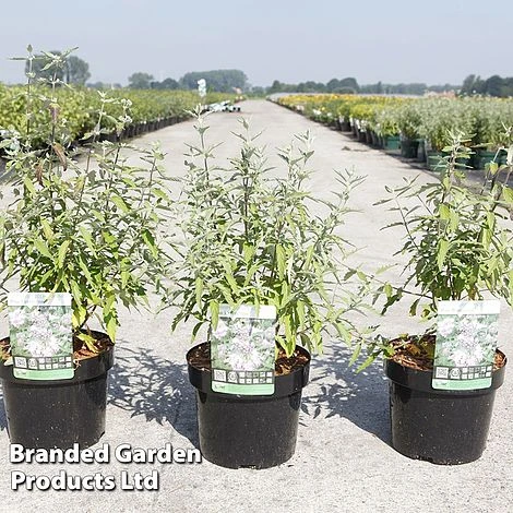 This upright, deciduous shrub is perfect for dry, hot, sunny borders, happily thriving in thin soils and surviving periods of drought. Erect stems clothed in toothed, aromatic, grey-green foliage carry whorls of small, pale pink flowers with spidery anthers which are a bee and butterfly magnet. Flowering commences in August and continues through to Autumn, making this a very useful shrub for injecting much needed late colour into borders and pots. Height and spread: 75cm (29in).