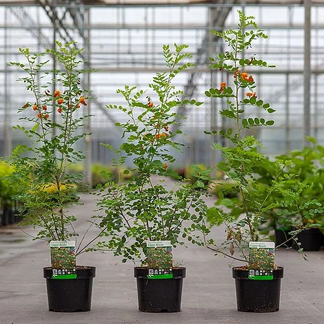This unusual shrub delivers interesting flowers in a rare colour, beautiful foliage and intriguing, bladder-like seedpods. Colutea media ‘Copper Beauty’ is a vigorous, bushy shrub with blue-green ladder-like leaves composed of 5 or 6 leaflets. In June and July, it is covered in racemes of 3 to 8 pea-like flowers in a lovely bronze-orange spotted with yellow markings. The flowers are followed by striking, red-tinged, bladder-like seed pods about 8cm long. The pods inflate as the seeds ripen and pop loudly when squeezed making them irresistible to curious children! Colutea media ‘Copper Beauty’ is easy to grow in a hot, sunny border with freely draining soil. Resistant to pollution it suits urban gardens and grows well in coastal locations and on dry banks. Its size can easily be restricted by pruning after flowering. Height and spread: 3m (10ft).