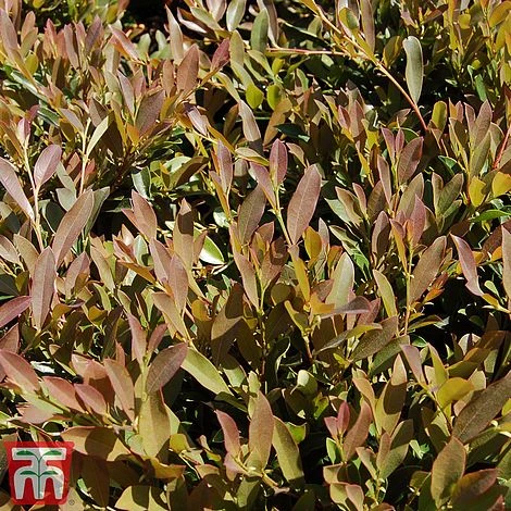 The evergreen blue-green foliage gives this relatively unknown shrub its name. Distylium myricoides ‘Blue Cascade’ is a sun loving, hardy shrub that will also tolerate partial shade, so it is useful in almost any part of the garden. Early spring sees the dark red petal-less flowers opening along the arching stems to add rich colour when it is needed in the garden. An easy to keep plant, the Blue Leafed Izu Tree will soon become a valued part of your collection. Height: 150cm (59″). Spread 120cm (47″).