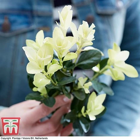 The Euonymus japonicus โHimalayaโ is a popular choice due to its versatility and hardiness. It is often used and grown as a tree or a shrub and is very popular lined along a garden bed, which is why you see it a lot in larger parks and gardens. Low maintenance and easy to care for and grow, in the summer it grows small creamy-green flowers over its dark green foliage. Height 70cm (28โ) and spread 30cm (12โ).
