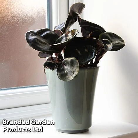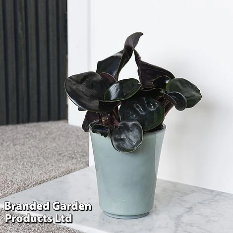 Geogenanthus ciliatus ‘Midnight Pearl’ is an extraordinary and very rare houseplant boasting totally unique colour-changing foliage. The shiny round leaves mature to almost black, giving the plant a goth-like and incredibly striking appearance. Purplish stems and a bright violet leaf midrib create a stunning contrast with the near-black foliage. This Amazonian native thrives in a humid environment such as a bathroom, in a bright spot out of direct sunlight. An exciting addition to any houseplant collection, ‘Midnight Pearl’ is sure to be marvelled at by all who see it! Height and spread: 15cm (6in).