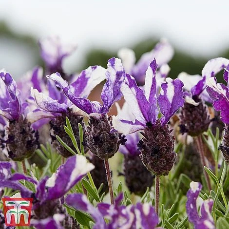This exciting new variety brings a modern twist to a garden favourite. Splendid bicolour blooms are purple with white splashes, each one unique! This is the latest addition to the Butterfly Garden series of French Lavenders, offering a neat and compact habit with good vigour. The aromatic blooms are loved by bees and butterflies, and make lovely cut flowers if you can spare a few for a summer posy. Lavender ‘Twin Summer’ is perfect for patio pots or planting as low hedge. Height and spread: 60cm (24″).