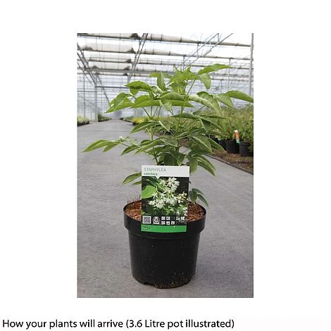 Staphylea colchica is an uprigth, deciduous shrub with panicles of fragrant, bell-shaped white flowers in Spring, changing to bladder-like greenish-white fruit – hence its common name ‘Ivory-flowered Bladdernut’. Thick stems bear pinnate, glossy green leaves and thrives in almost all soil types. Height & Spread: 3.5m (11′).
