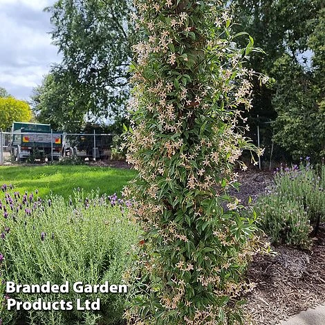 Trachelospermum jasminoides is one of the best value climbers. It delivers all year-round cover and colour with its glossy, evergreen foliage plus abundant flowers that have an intoxicating perfume and continue blooming all the way from May until September. All of this in a vigorous climbing vine that is drought-tolerant, pest and disease-free, doesn’t require much pruning and is easy to grow! It’s a difficult combination to beat but this superb new variety has gone one step further by combining both variegated foliage and pink flowers. Height and spread: 3m (9’9″).